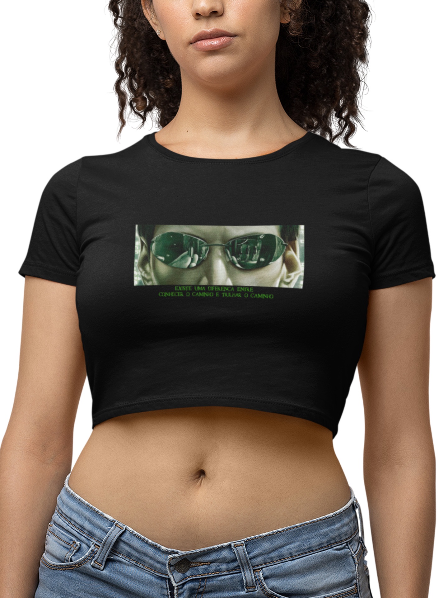 Blusa Cropped Matrix - Coleção Janelas da Alma - "EXISTE UMA DIFERENÇA ENTRE CONHECER O CAMINHO E TRILHAR O CAMINHO"